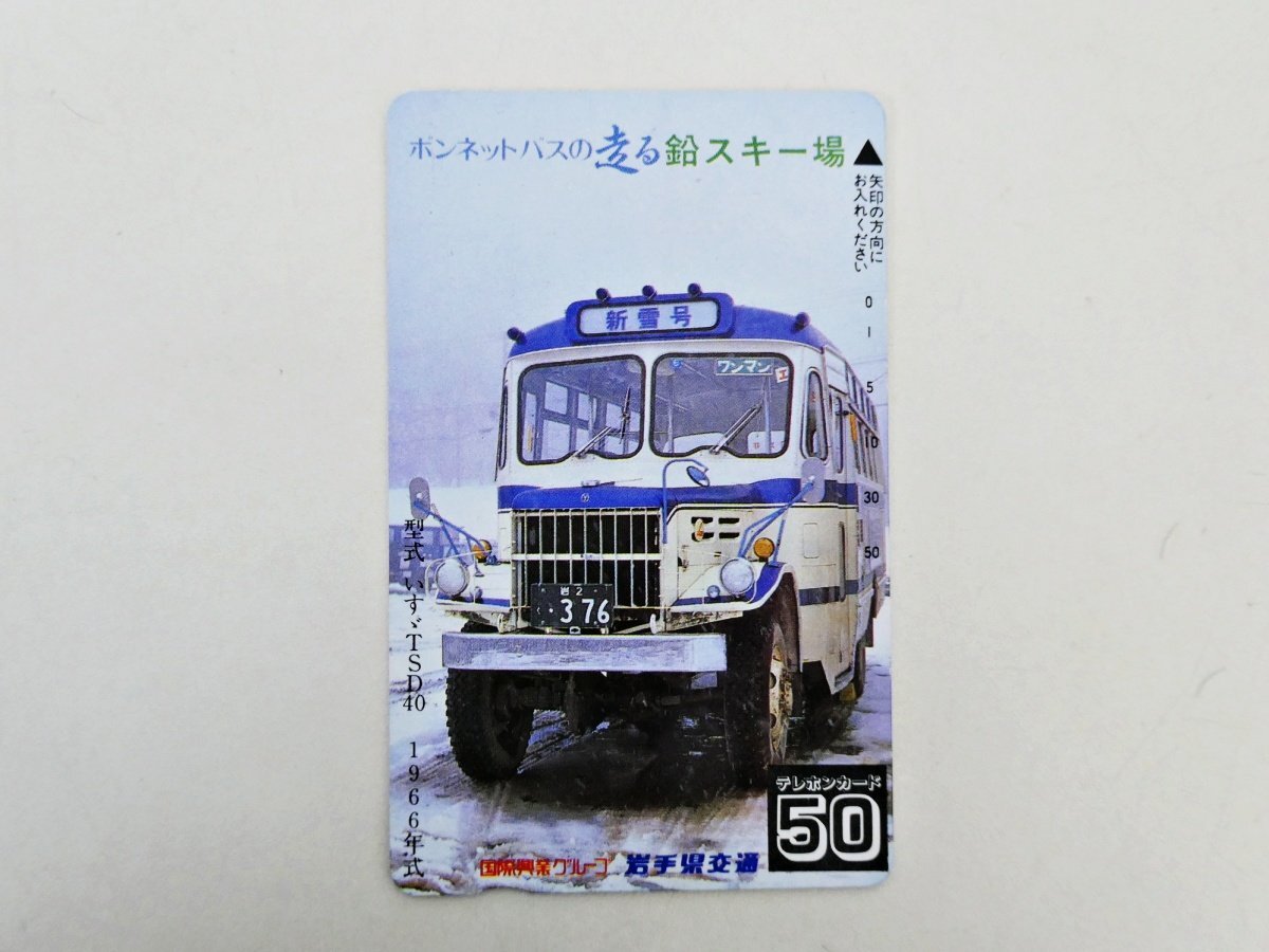 - 【512】 テレカ バス ボンネットバス 新雪号 岩手県交通 いすゞ TSD40 鉛スキー場 テレホンカード 50度