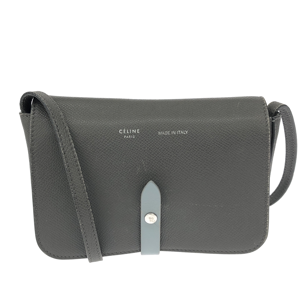- ◆CELINE セリーヌ クラッチ ショルダーバッグ◆ グレー レザー レディース 斜め掛け bag 鞄
