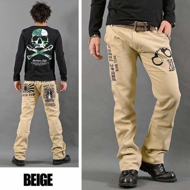 - BURST JAPAN 刺繍日章旗 マリアフェイクポケット シューカットチノパンツ 刺繍 BUJ-0030 新品 ベージュ L