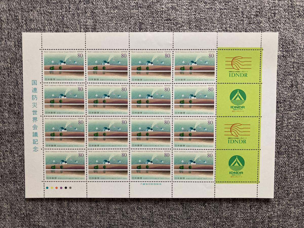 - ★未使用 国連防災 世界会議記念 水辺の家 1994年 平成6年 切手シート 80円 16枚 タブ4枚 日本郵便