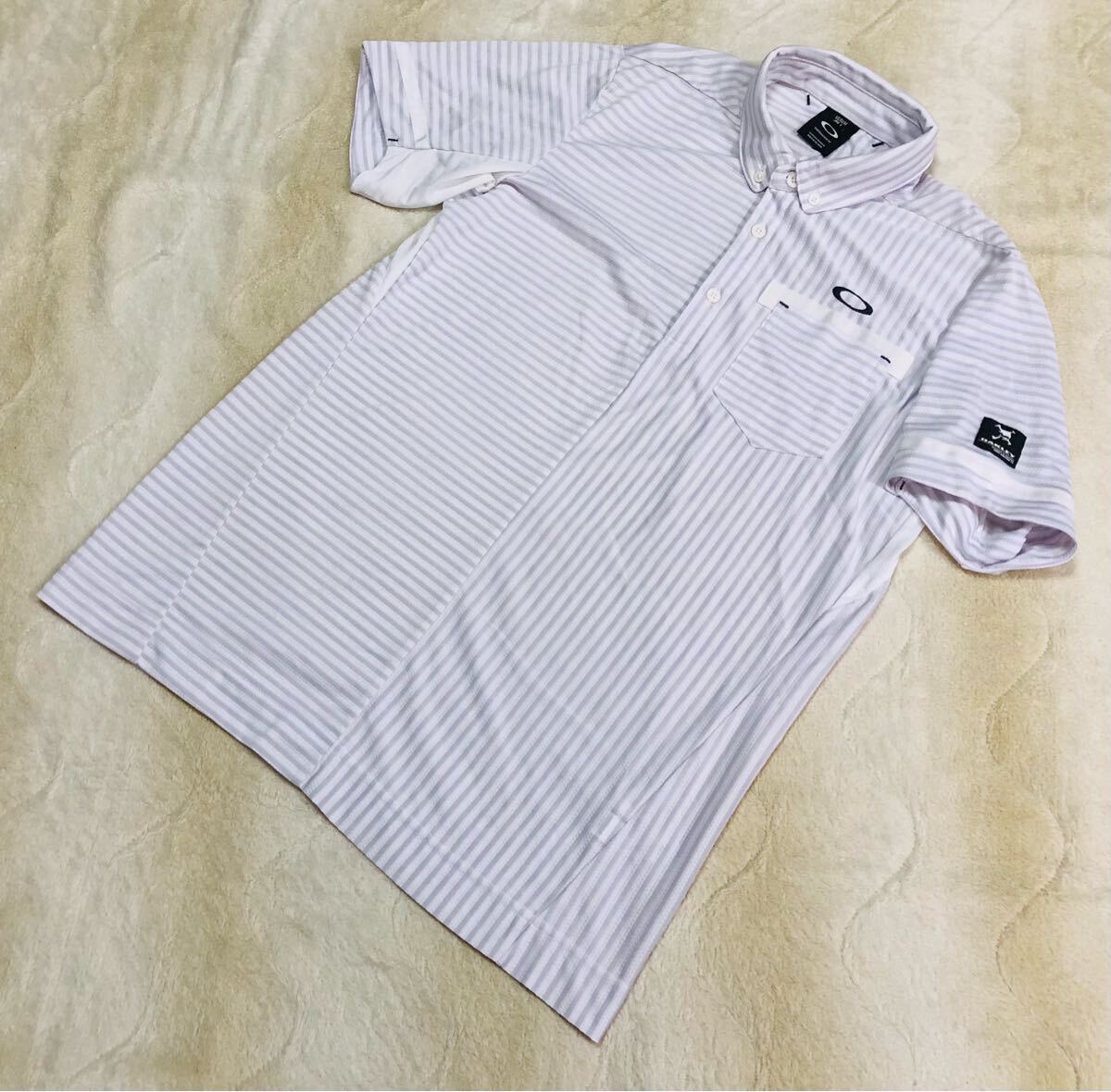 > ☆OAKLEY☆オークリー スカル ボタンダウン 半袖 ポロシャツ L ボーダー ストライプ 切替 トレーニング ゴルフ 434392JP