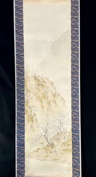 - HM2204[真作]村上志郎「田家梅林」掛軸 絹本 山水図/合箱 小野竹喬 土田麦僊に師事