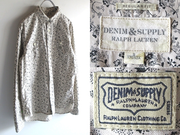 - DENIM&SUPPLY RALPH LAUREN デニム&サプライ ラルフローレン ロゴワッペン 猫目ボタン マチ付 花柄 フラワー柄 コットン ワークシャツ S