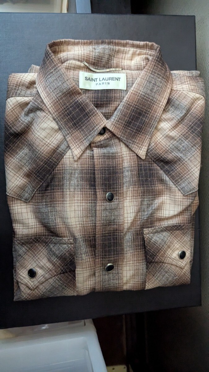 > SAINT LAURENT PARIS ネルシャツ XS チェック ブラウン #UP53-2015-37 サンローラン パリ