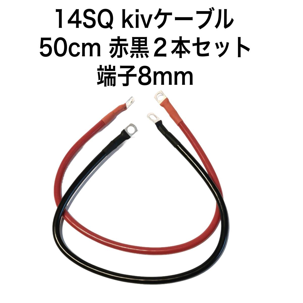 > 50cmKIVケーブル 赤黒2本 14SQ バッテリーインバーター接続ケーブル 6AWG バッテリーケーブル 8mm端子接続防水加工済み