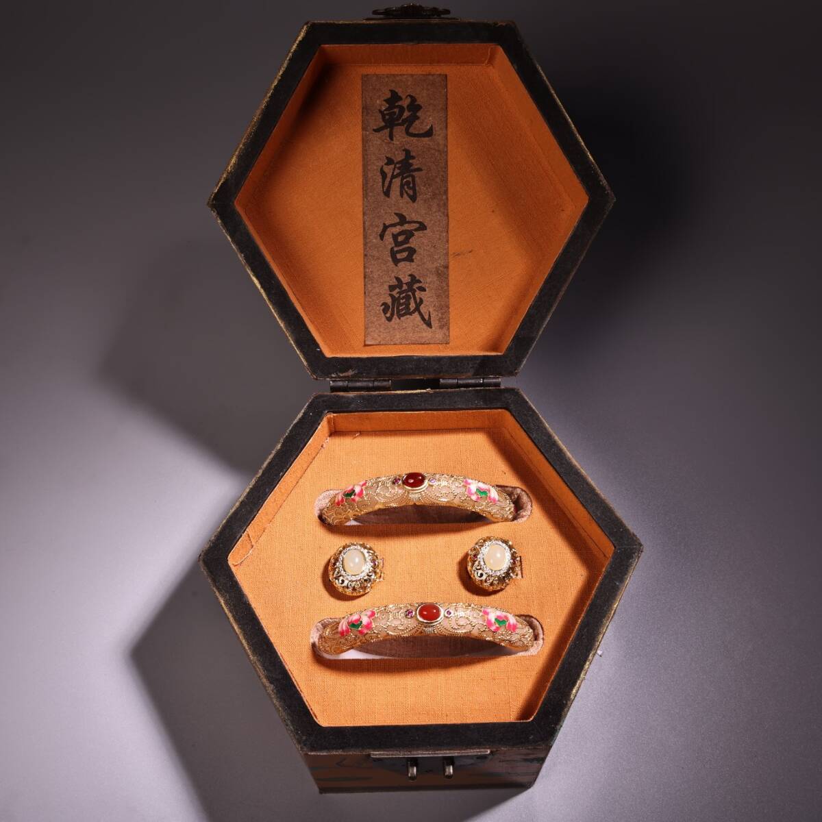 - 清 宮廷御製 古和田玉彫 花嵌白玉腕輪 指輪 漆器盒 箱付 極細工 東洋彫刻 骨董品 古賞物 中国古玩 中国古美術