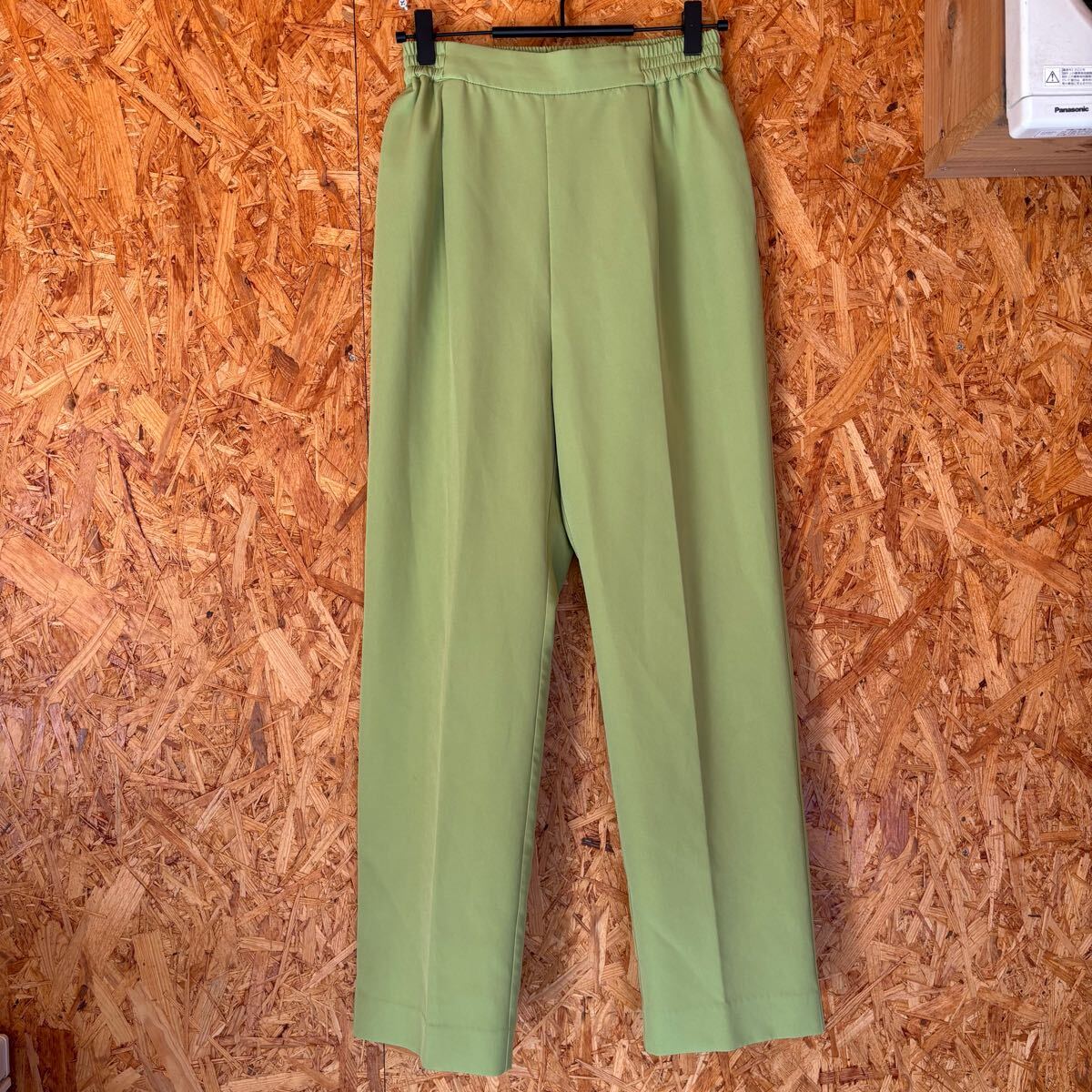 - 美品 SHIPS any パンツ スラックス センタープレス ウエストゴム 黄緑 ボトムス レディース ハイウエストパンツ 4281