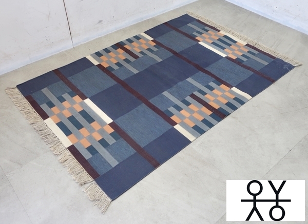 > ■P570■OYYO■No2■スウェーデン■ENNIS INDIGO■ハンドクラフト■手織り■オーガニックコットン■ラグ■絨毯■182×121㎝■