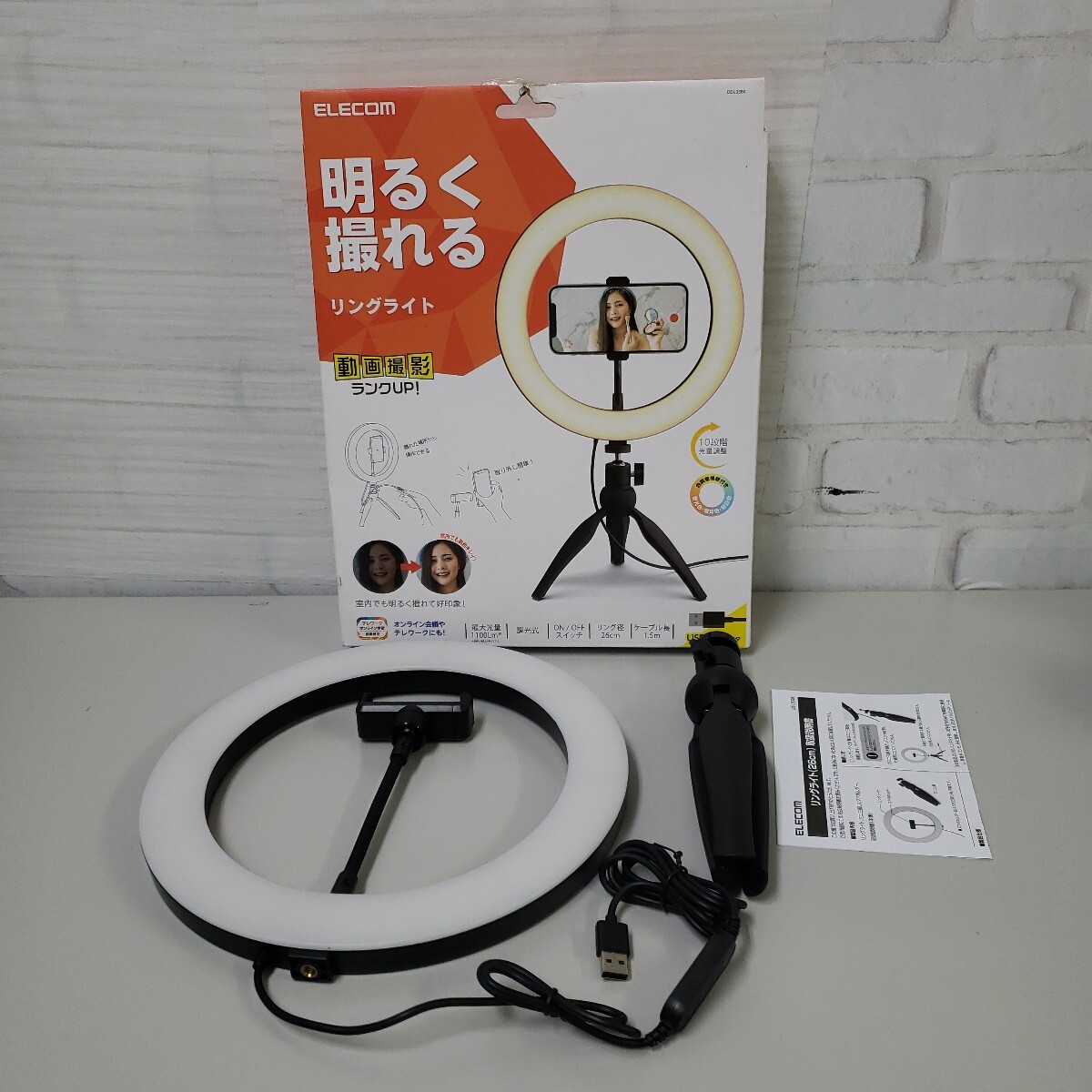 > 704y2107★エレコム LED リングライト 三脚 26cm 3色モード / 10段階調光 USB給電 ブラック DE-L03BK