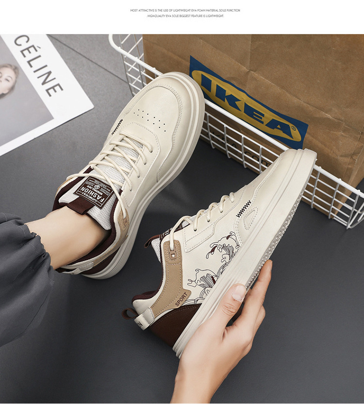 - 新品上質 サイズ選択可スニーカー 靴 メンズ 厚底 運動 幅広 シンプル 安い カジュアル ベージュ 27CM