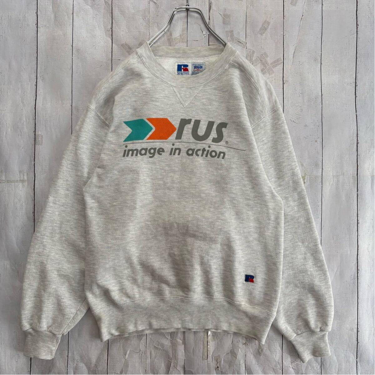 - 90s USA製 Russell HIGH Cotton ラッセル ハイコットン 前V スウェット Mサイズ 霜降りグレー US古着