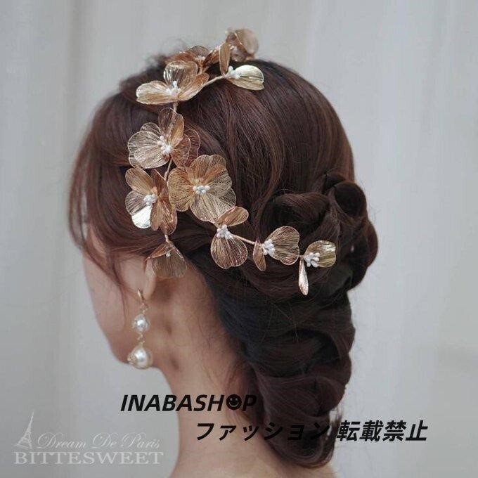 > ウェディング ブライダル 結婚式 ヘアアクセサリー ウエディング ヘッドドレスヘアアクセ 花嫁髪飾二次会 花リーフ ナチュラルヴィンテージ