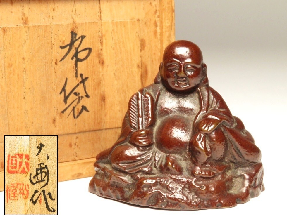 - 【9822】仏教美術 銅製 布袋 共箱 大國作(初品・買取品)