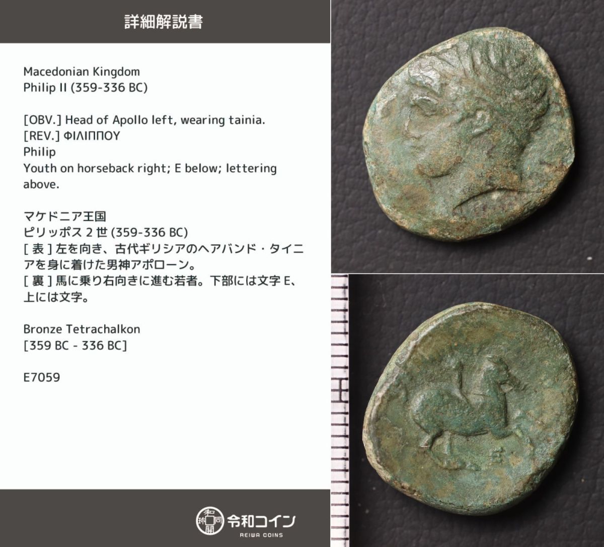 > *[令]マケドニア王国 ピリッポス2世 359-336 BC,【詳細解説カード付】古代ギリシャコイン、古代ローマ [E7059]7h3
