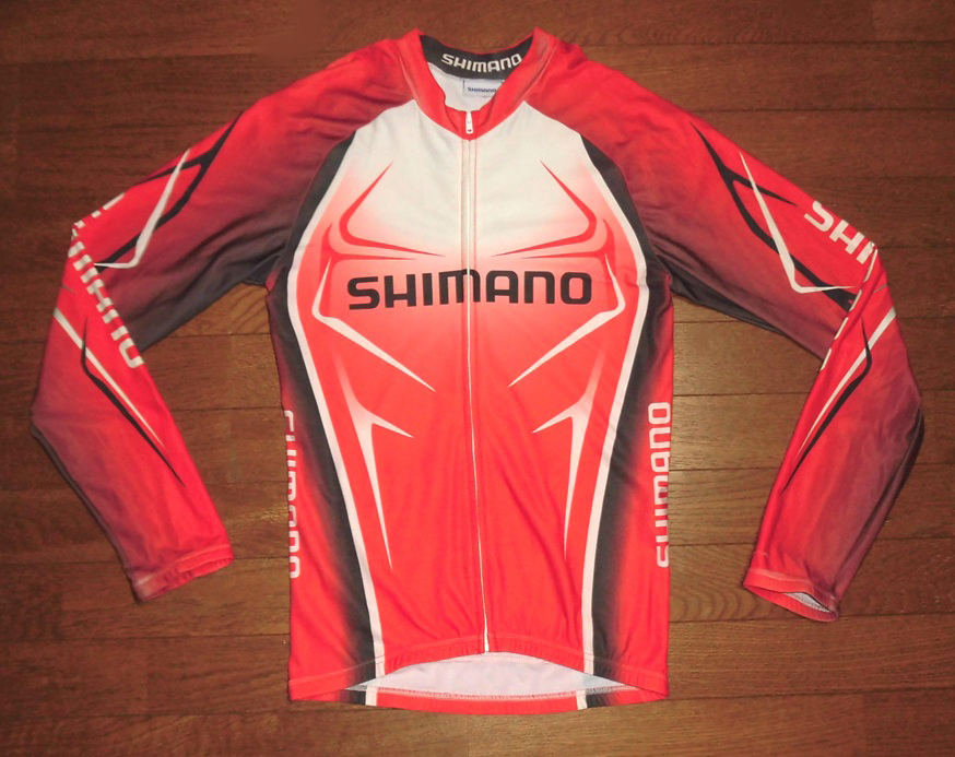 > SHIMANO シマノ 長袖 フルジップ ジップアップ サイクル ジャージ RED M 使用少 美品/デュラエース コルナゴ トレック ピナレロ