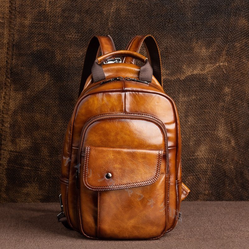 - 本革オイルレザー ボディバッグ メンズ レディース 本皮 レザー リュック 多機能 鞄 父の日 ipad ブラウン スタート
