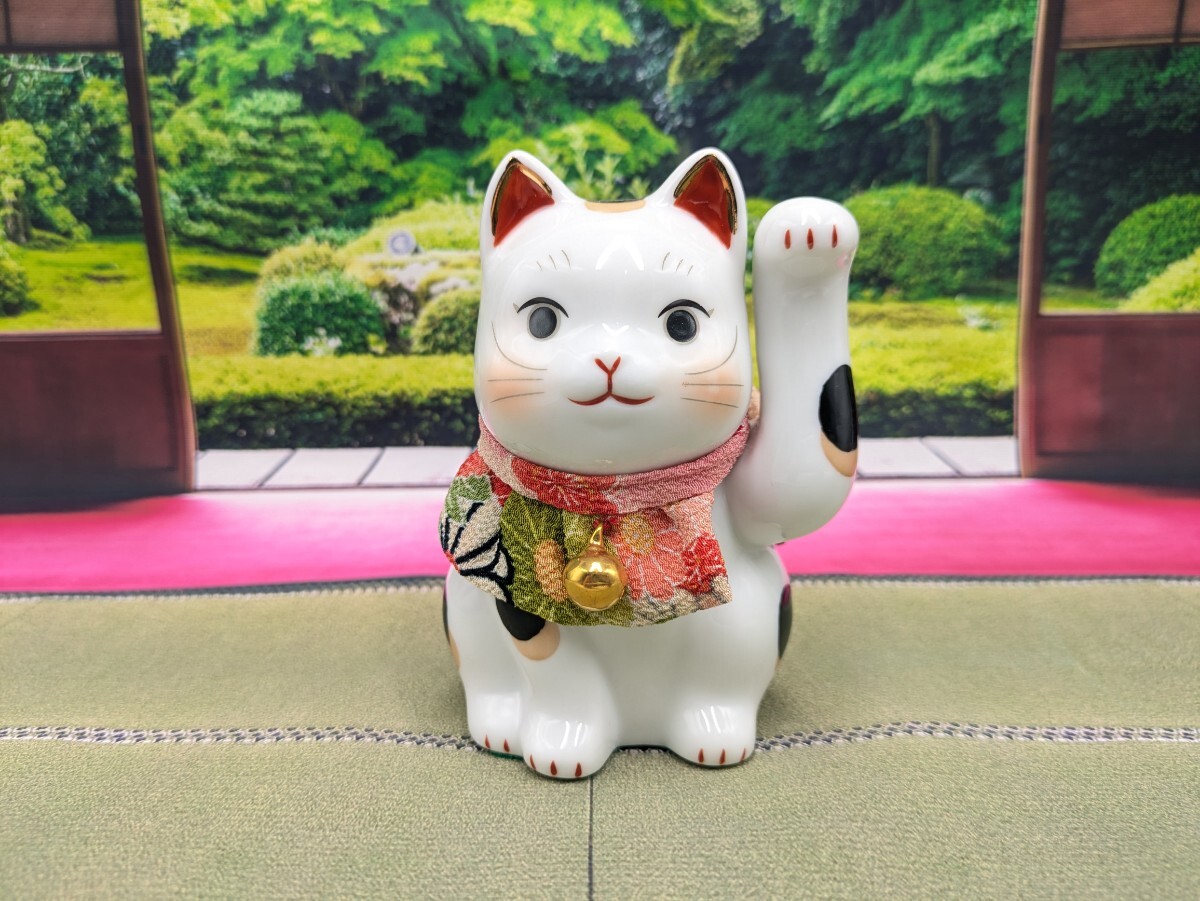 - 縁起物 招き猫 彩絵ふく福招き猫 左手上げ 薬師窯 ②