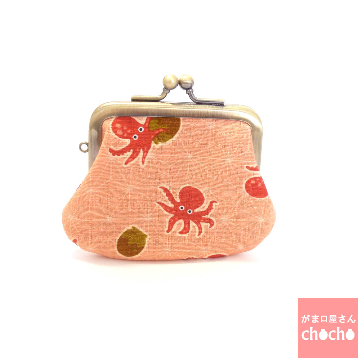 - がま口小銭入れ タコ柄 和柄 ピンク コインケース かわいい ハンドメイド G465