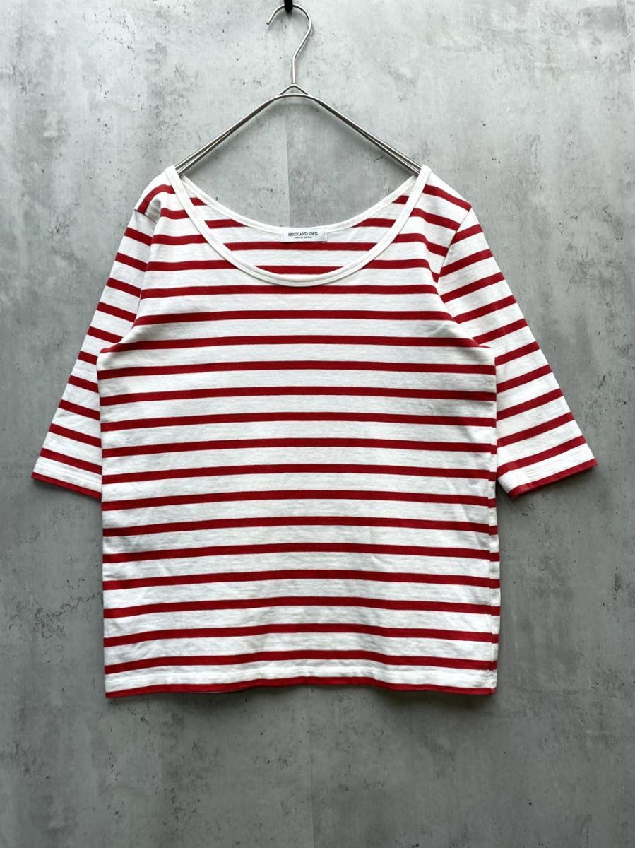 - ゆうパケットOK Spick & Span スピック&スパン ボーダー 5分袖 Tシャツ 白x赤 ■◆