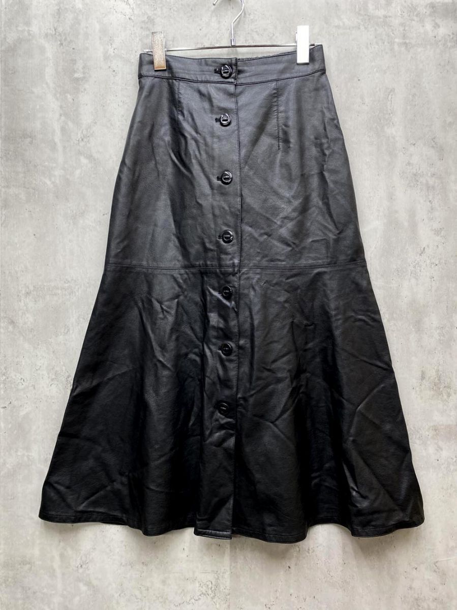 - rienda リエンダ フェイクレザー ロング スカート sizeM/黒 ■◇