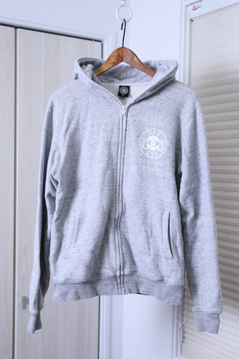 日本製AND SUNS アンドサンズ プリントワッペン加工 霜降り生地ジップアップパーカー