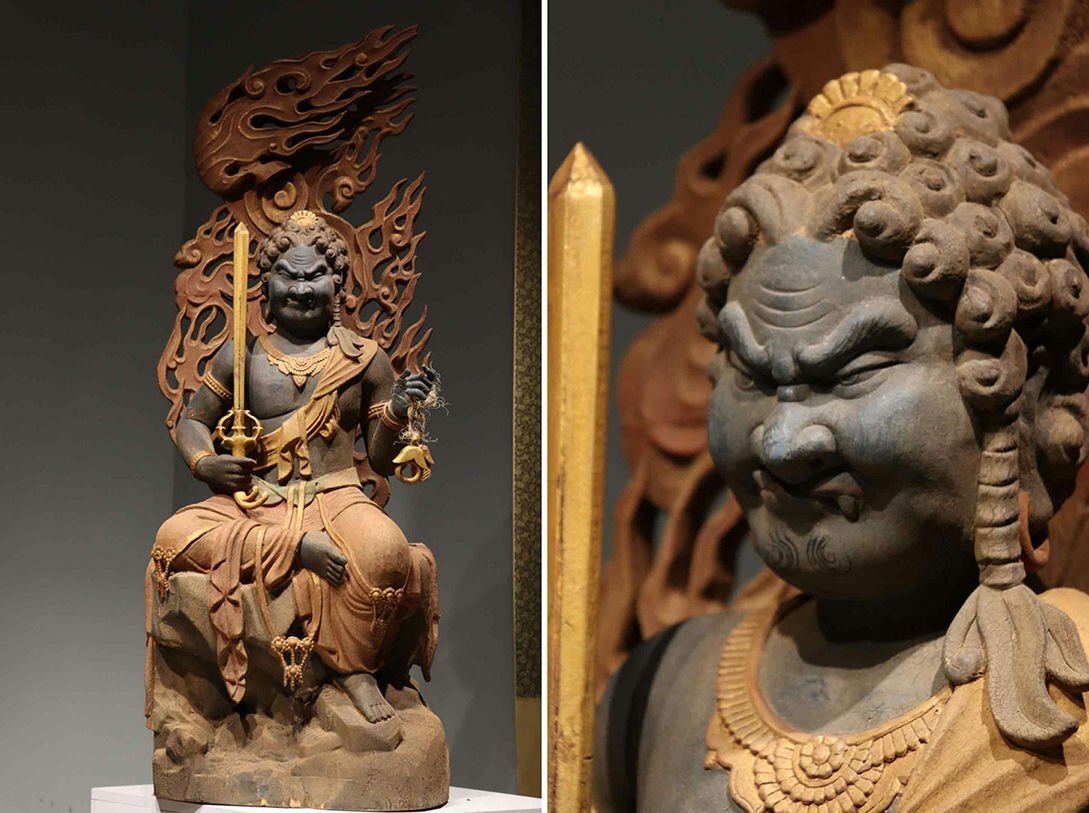 - ▼渡鶴羽▼A5469明時代 楠木木彫彩絵 不動明王 楠木細工彫刻★仏教古美術★仏像★細密細工★廃寺旧蔵★廃寺買出品