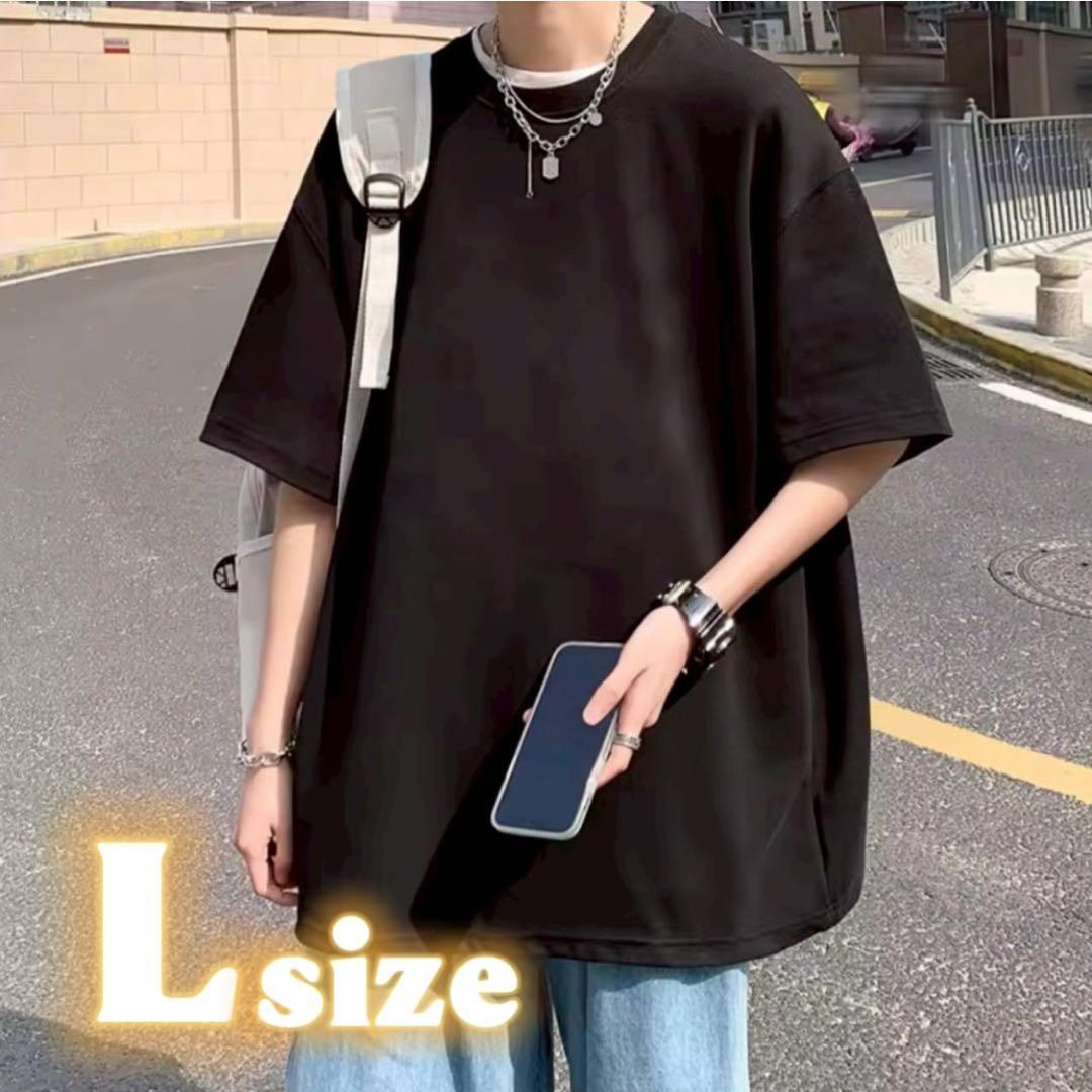 - メンズ Tシャツ プルオーバー 五分袖 ドロップショルダー ブラック L