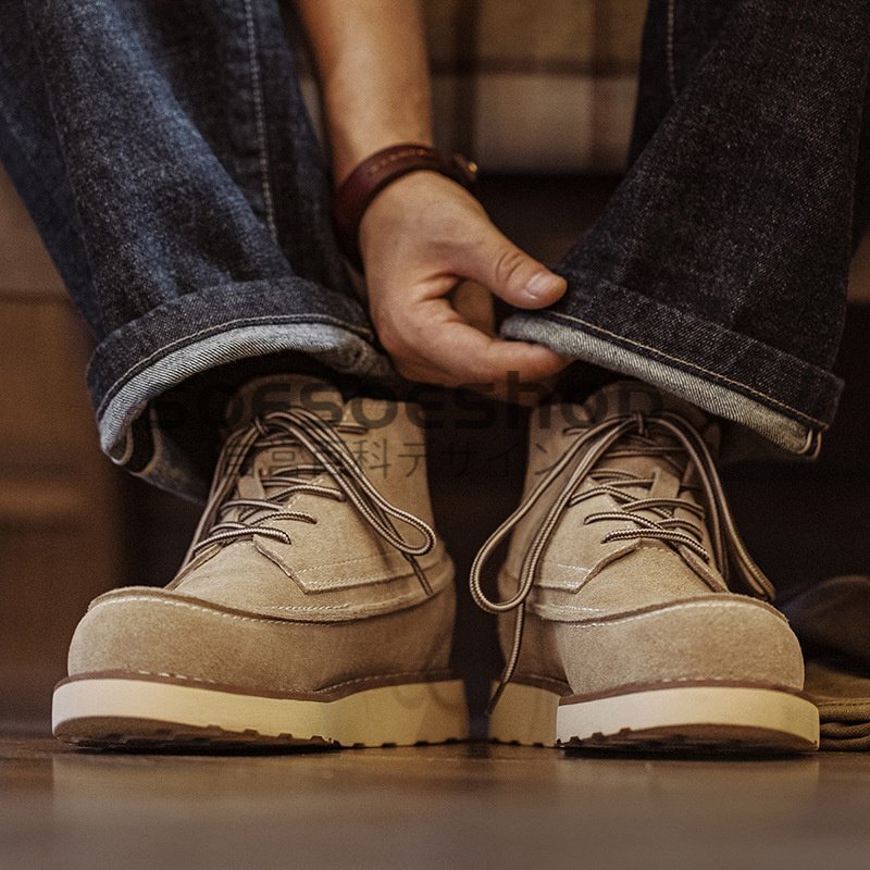 > ヴィンテージスタイル 牛革スウェードエンジニアブーツ メンズ 25㎝~27.5㎝ レプリカ 復刻 靴 新品 ベージュ