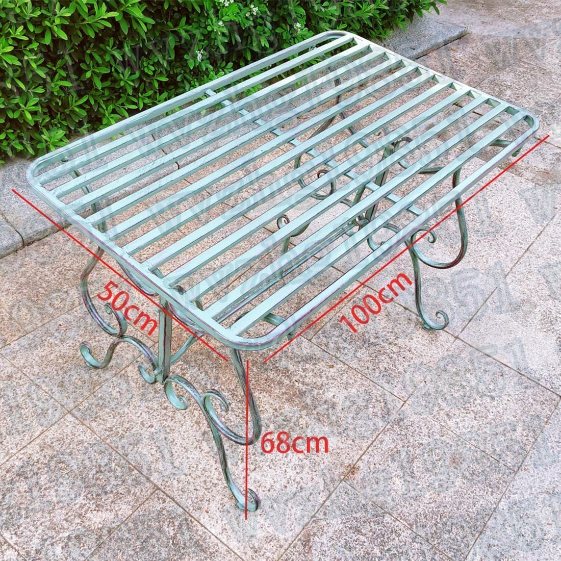 - レトロなテラステーブル&椅子ンティークガーデンベンチメタルパークベンチ屋外ベンチグリーン屋外パティオ家具(低机)