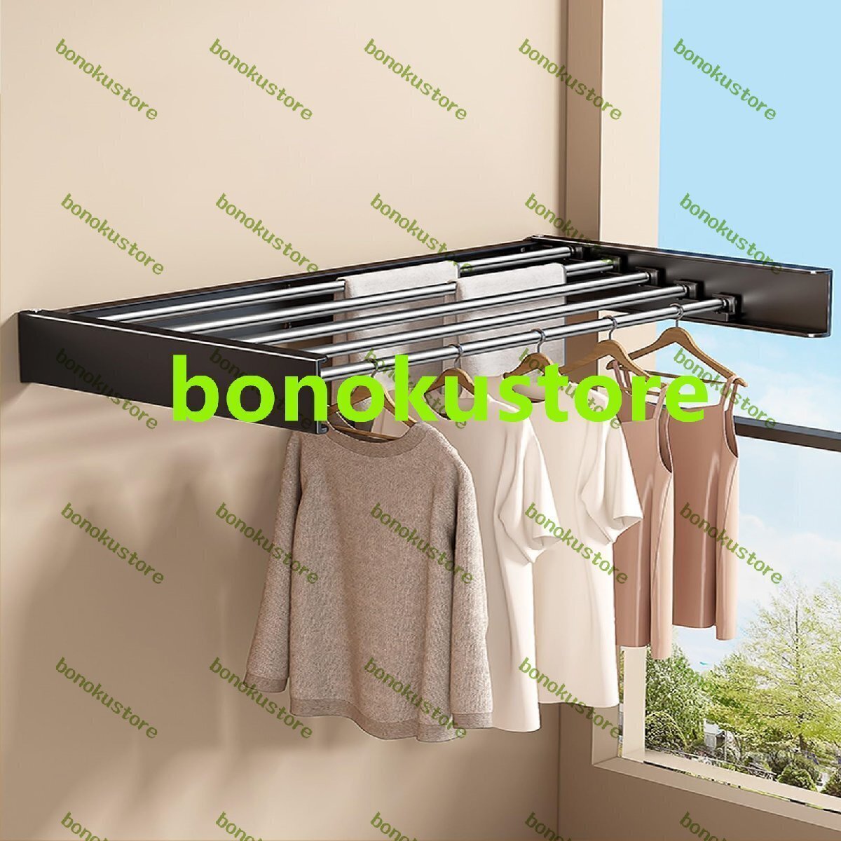 > 窓枠 手すり 折りたたみ 物干しスタンド 物干しラック 室内 壁付け 物干し 折りたたみ式でコンパクト 場所を取らない 100x50x10cm