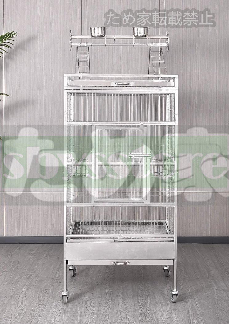 - 超人気★鳥かご・ケージ 豪華な大型オウムケージ 中庭鳩繁殖ケージ 正方形のステンレス鋼の鳥かご 遊戯台 キャスター付き 58.2*54*149.5cm