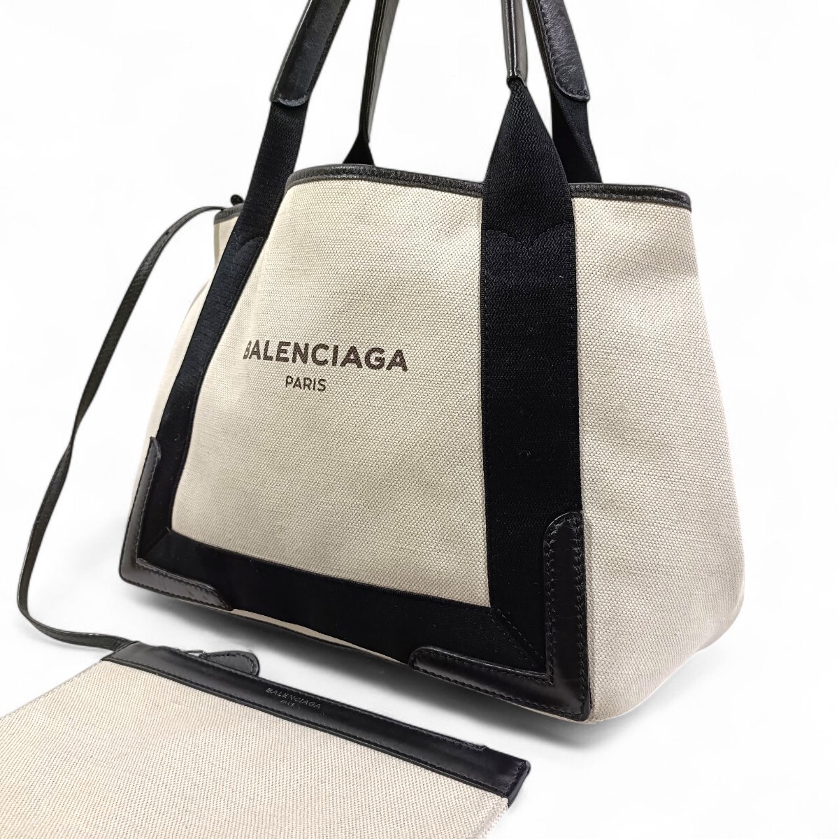 - 正規品 バレンシアガ ハンドバッグ カバス ポーチ付き キャンバス ホワイト 白 黒 ブラック 鞄 BALENCIAGA かばん モノトーン 男女兼用