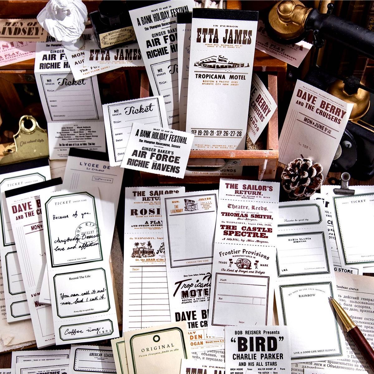 > チケットシリーズ③ 6種180枚 票券風 切取線 素材紙 ロゴ メモ 装飾 スクラップブッキング ジャンクジャーナル コラージュ