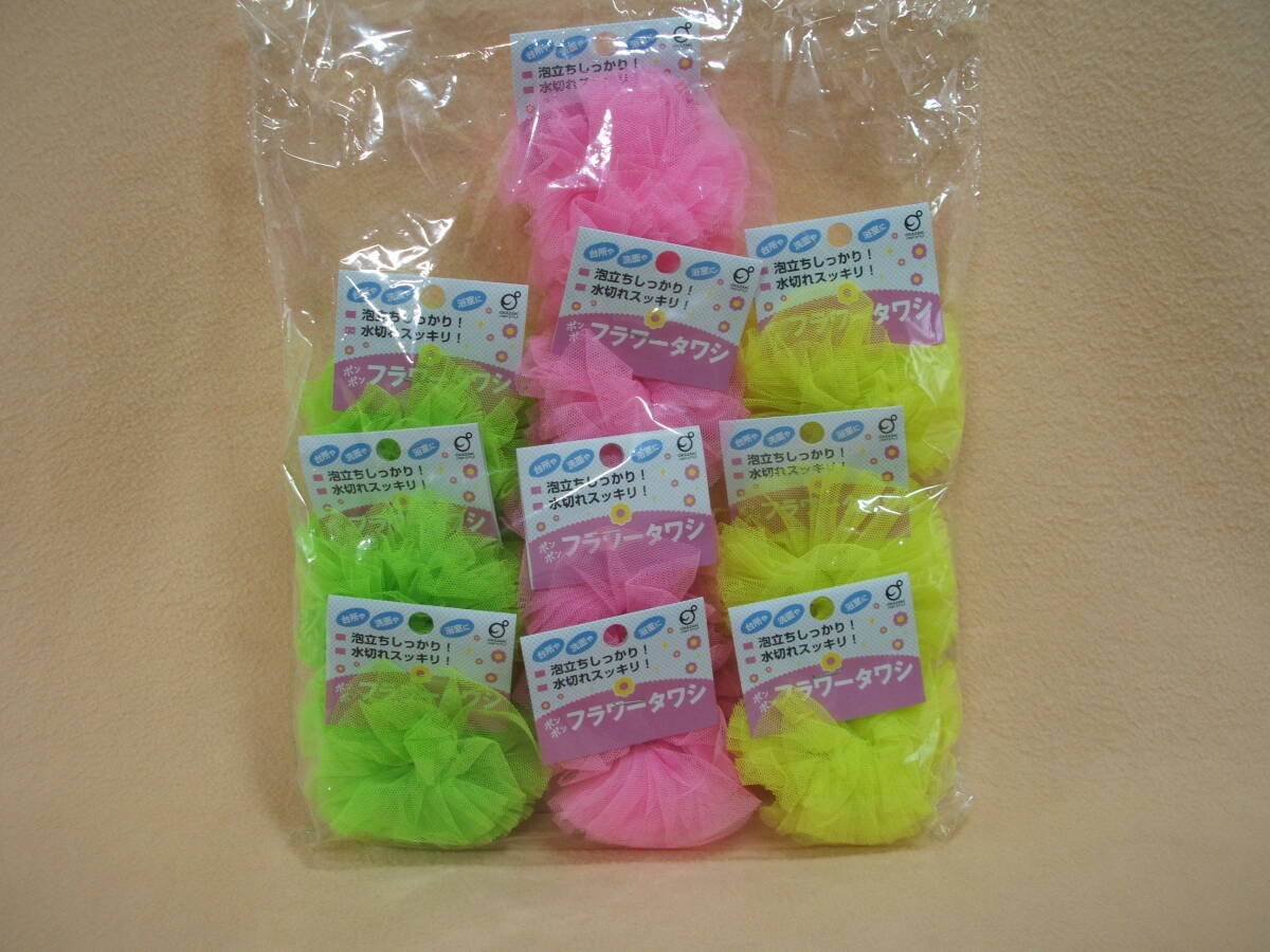 - ポンポン フラワータワシ (色込み・3色) 10個 新品 未使用 キッチン スポンジ たわし 花 タワシ 食器 鍋 厨房 浴槽 網戸 窓ガラス 洗い