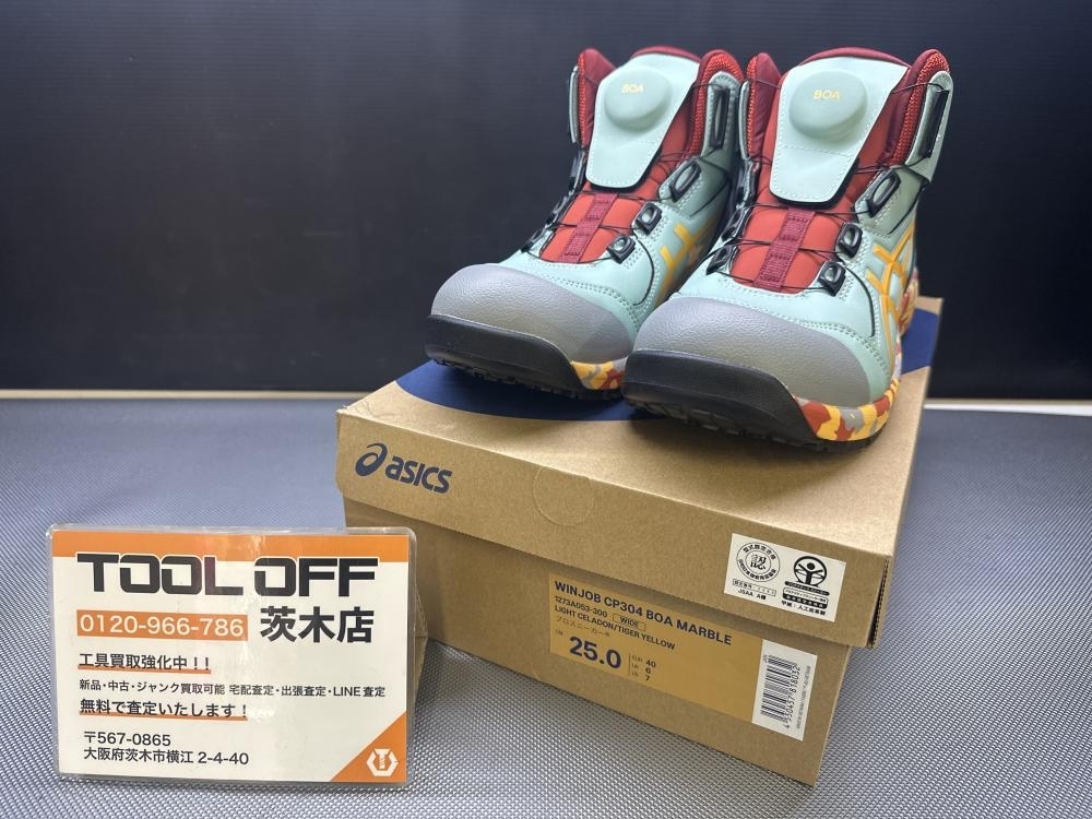 > 015●未使用品●アシックス ASICS 安全靴 ウィンジョブ BOA 1273A053-300 25.0㎝ ライトセラドン×タイガーイエロー