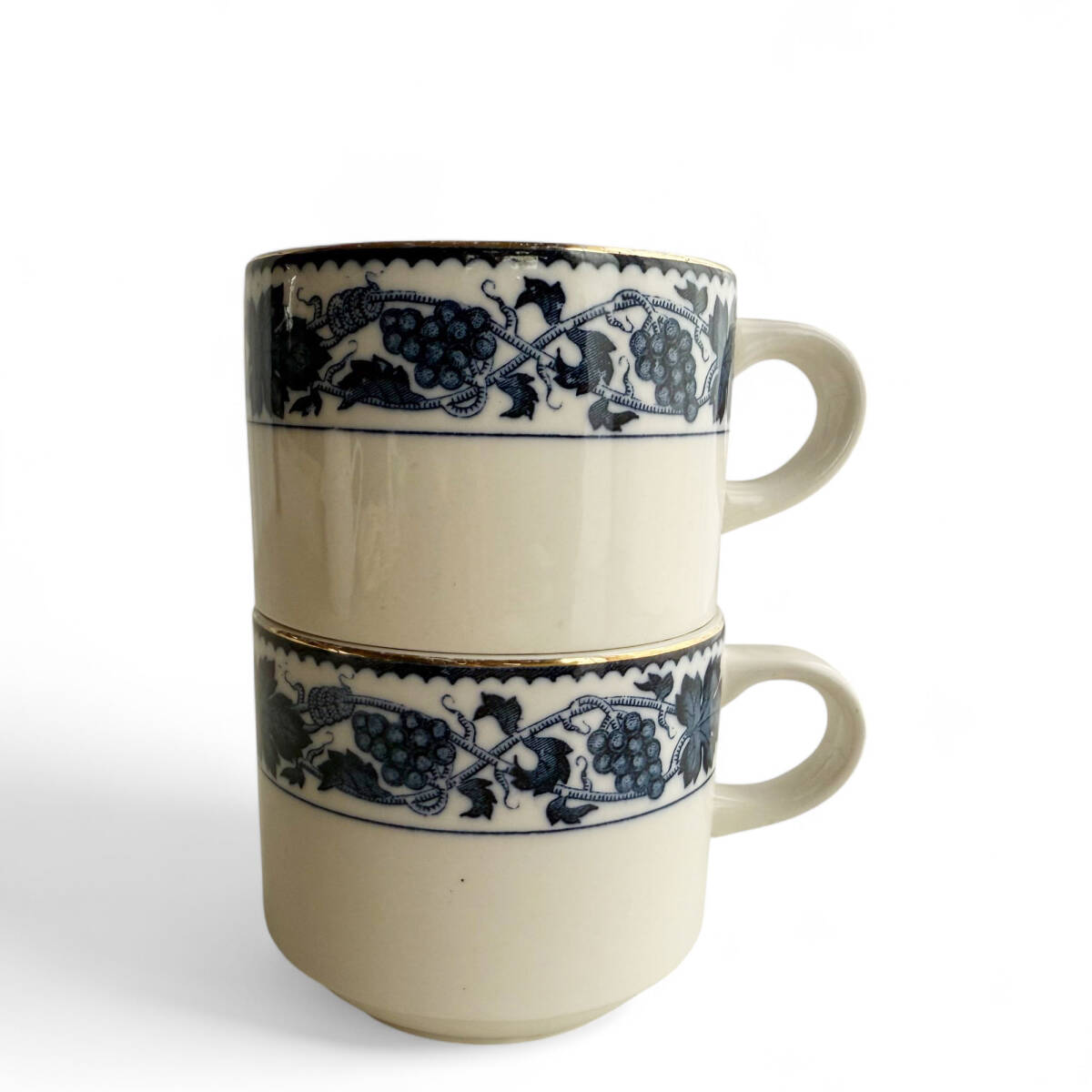- H7-589 NIKKO ニッコ- ダブルフェニックス 葡萄柄 スタッキング マグカップ 2客 金彩 ぶどう