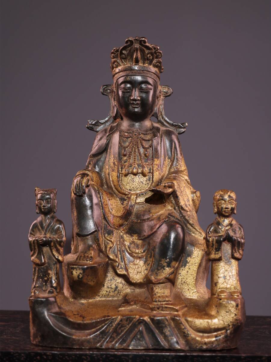 - 【超珍館蔵】銅製 泥金 送子觀音像 仏教古美術 供養品 古賞物 古美術品 稀少珍蔵品