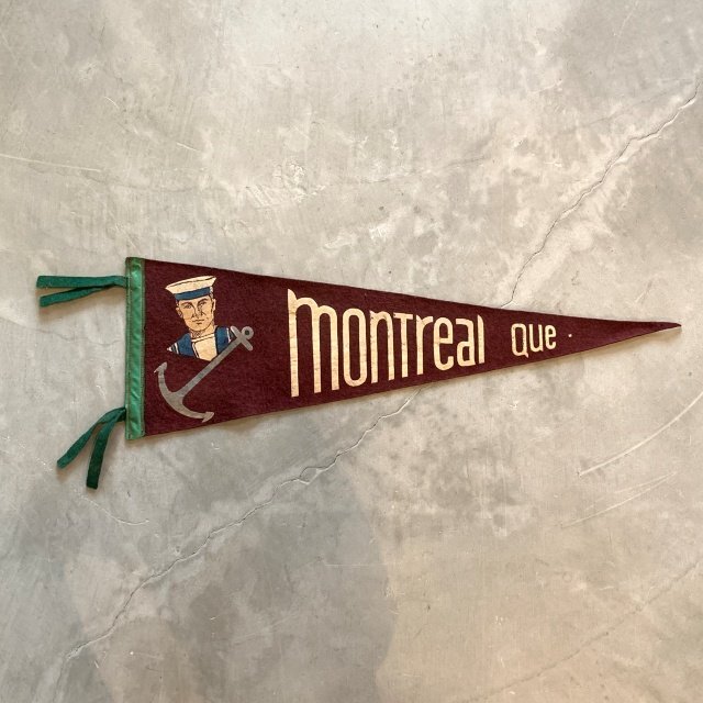 - 【20㎝×61㎝】Montrel Qu. セーラー アンカー ベロア フェルトペナント■ビンテージ アンティーク アメリカ雑貨 マリン ミリタリー 海兵