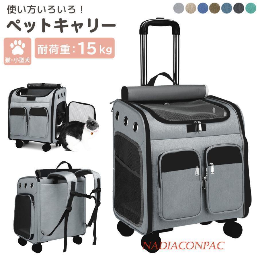 - ペットキャリー リュック 3点セット 犬 小型犬 中型犬 猫 3way バッグ キャスター付き 持ち手 キャリー カート 移動 手提げ 耐荷重15kg