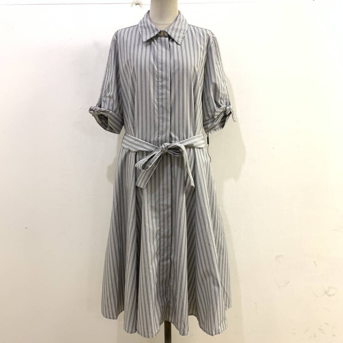 > ☆未使用品 Calvin Klein カルバンクライン ストライプ柄 シャツワンピース トップス グレー×ホワイト サイズ6【送料一律/同梱可能】A
