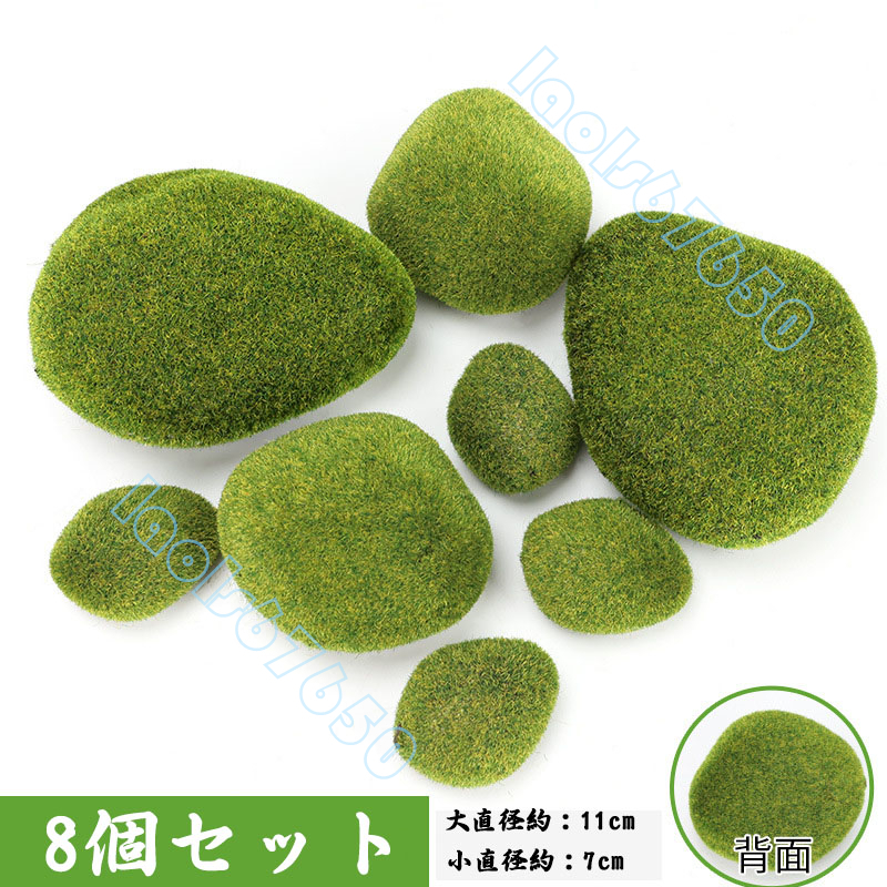 - 8点セット 人工苔付き 造園装飾材 色落ちにくい DIY装飾品 人工石 stone