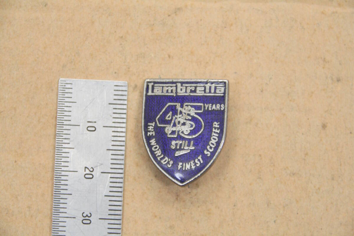 - ベスパ ランブレッタ VESPA LAMBRETTA PIAGGIO Vespa ビンテージ Pins バッジ Lambretta45周年バッジ 青