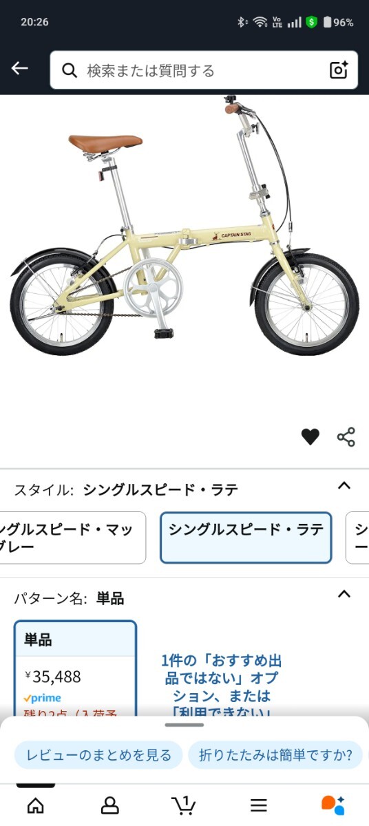 - キャプテンスタッグ 折りたたみ自転車 シングルスピード ラテ 約10kg 大径52t アルミ 16インチ