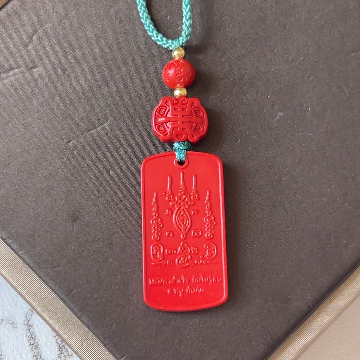 - ◇シナバー(辰砂)◇五条経文+真言◇ネックレス◇ペンダント◇パワーストーン◇巾着袋付き◇プレゼントにも028P4291