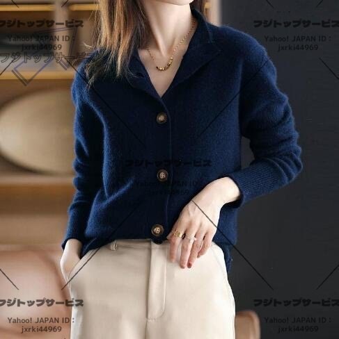 - 新作新品ミンクカシミヤ90% しっとり柔らかい着心地最高 知的素敵カーディガン 厚手 ニットセーター 紺色