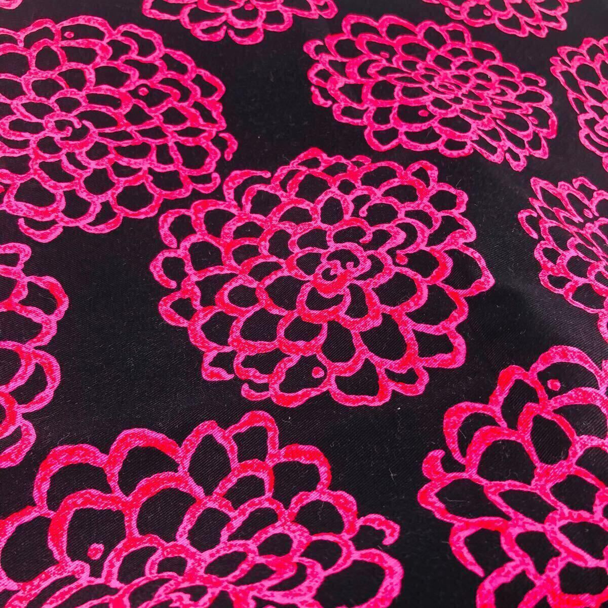 - 1m 日本製 コットンこばやし ダリア ツイル 生地 コットン 布 はぎれ 花柄 黒地 ツイル 生地