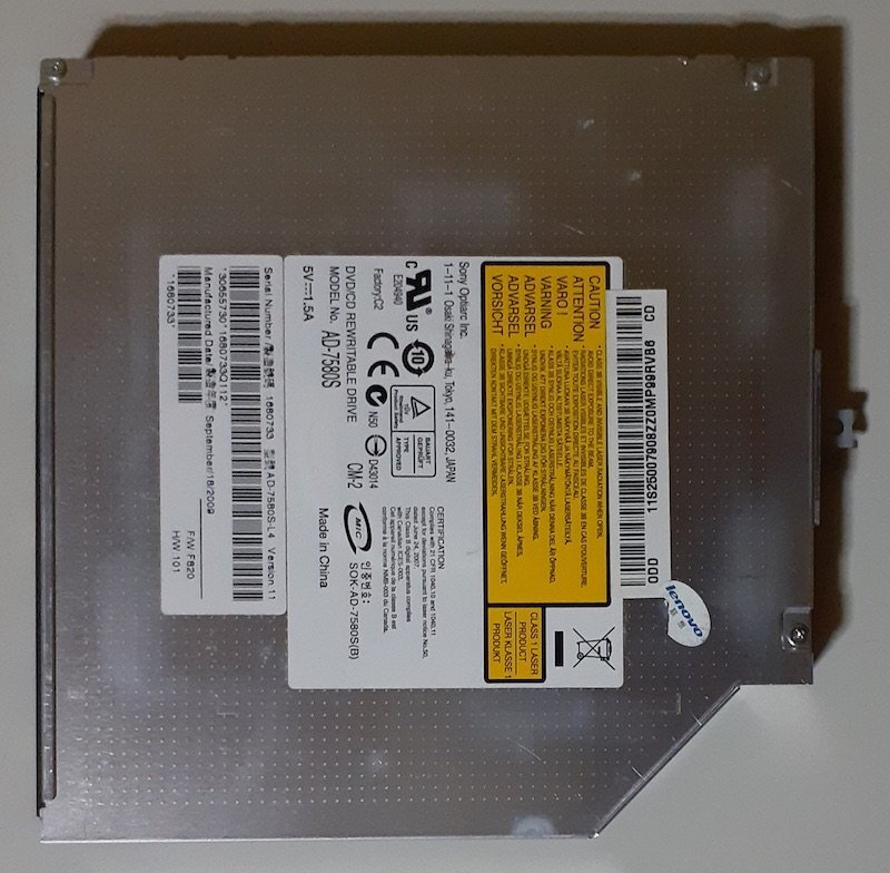 > 5505 SATA内蔵 スリム DVDマルチドライブ AD-7580S SONY Optiarc マウンタ付き ベゼルなし lenovo