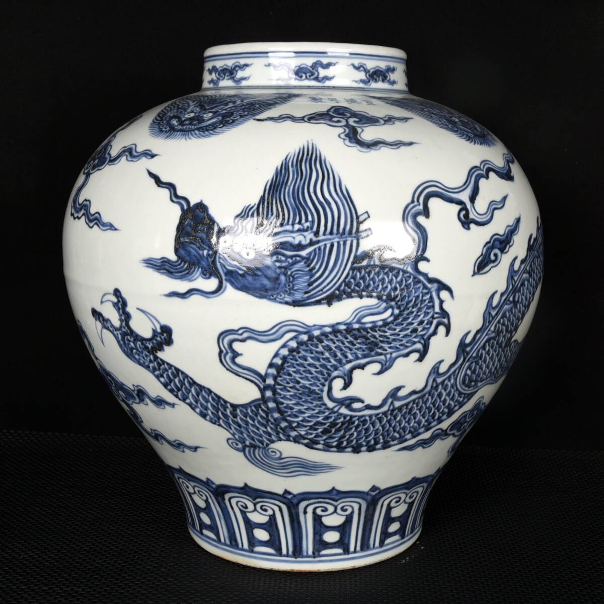 - 【超珍館蔵】明 宣德年製款 古陶瓷品 青花 云龍紋 獣頭罐 置物 古賞物 古美術品 稀少珍蔵品