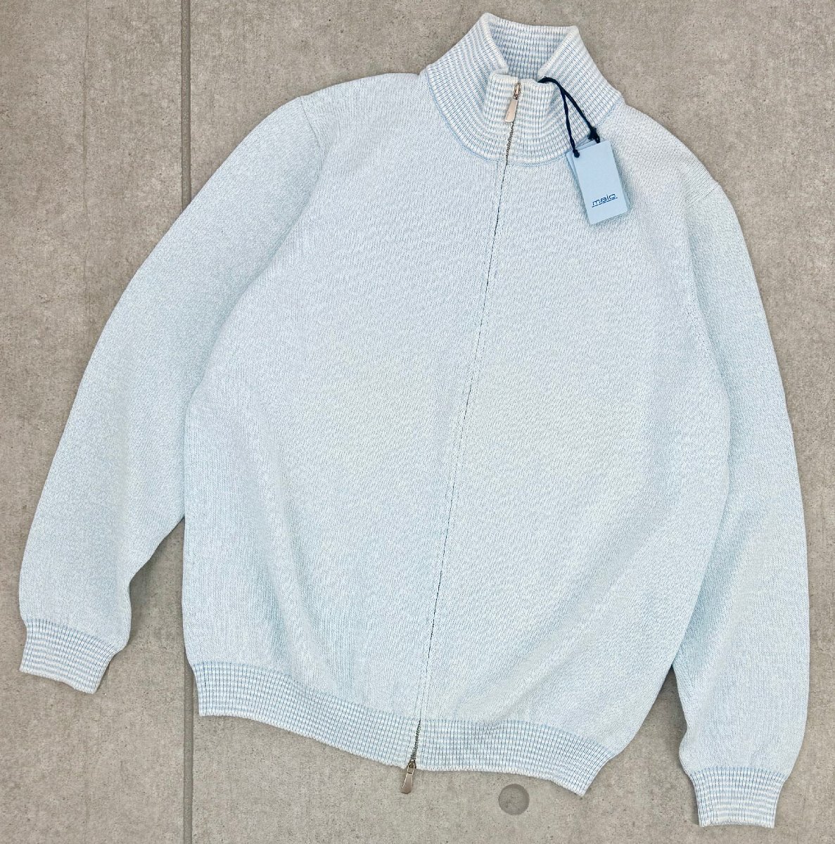 - 訳有 未使用品 Malo マーロ コットン ドライバーズ ニット ハイネック ジップアップ カーディガン ブルゾン 52/XL 水色 イタリア製