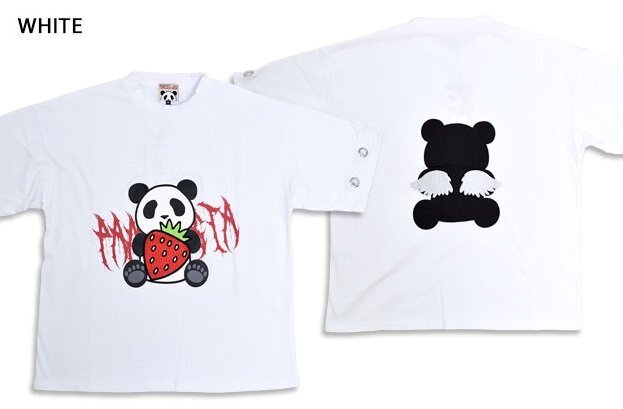 > イチゴとパンダさんハトメ袖BIG Tシャツ◆PANDIESTA JAPAN ホワイトLサイズ 585106 パンディエスタジャパン ゆったりめ ユニセックス